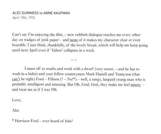 Finally, Thursday was the 101st anniversary of the birth of Alec Guinness. Turns out he wasn’t the biggest fan of what was likely his most lucrative role.