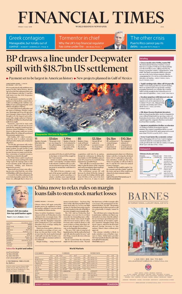* WORLD * As Greece prepares for its referendum on Sunday over whether to accept the Eurozone creditors’ bailout plan, the Wall Street Journal reports that the IMF had “raised the stakes” by warning that